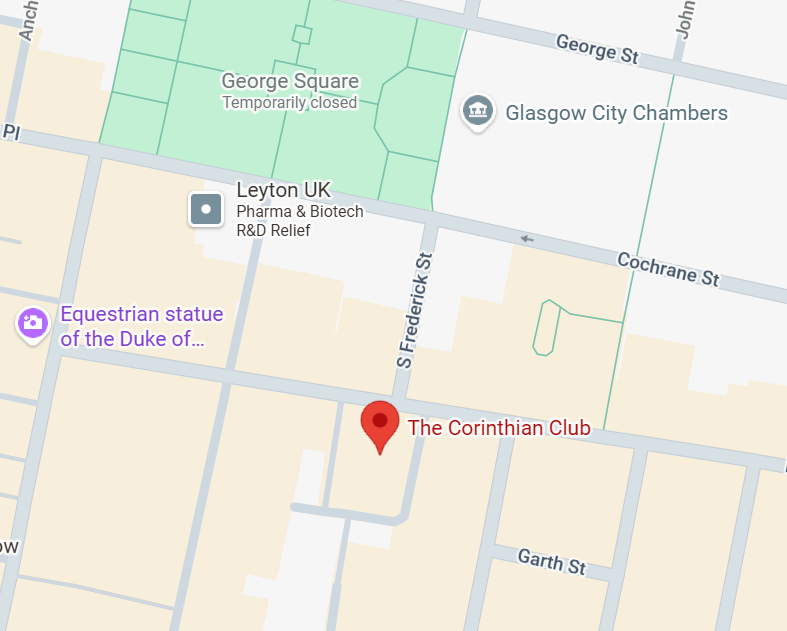 The Corinthian is located on Ingram Street near George Square. If you are travelling by train the nearest station is Glasgow Queen Street but Glasgow Central is also a short walk away. There are plenty of hotels nearby and we would recommend Mercure, Ibis Style, Travelodge and Premier suites as they are all a short walk away from the venue.